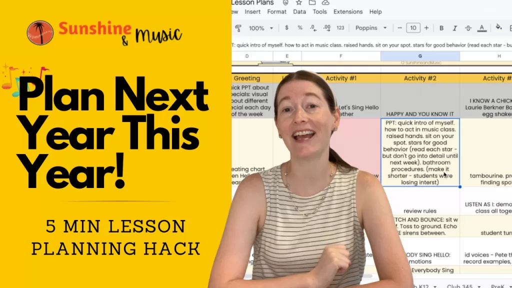 Want to take your lesson planning to the next level? Check out my post on Lesson Planning for Elementary Music: 10 Crucial Things You Are Forgetting to Add To Your Lessons. I’ll walk you through all the things you’ll want to include in your lessons, as well as the why and even give you a free workbook to get you started in your planning!