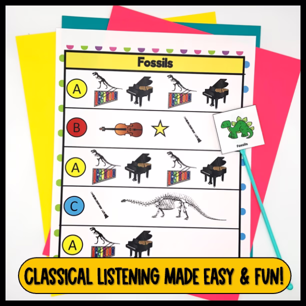 Listening maps make classical pieces easy to follow with a clear visual representation that highlights key musical elements happening in the piece. Make listening to classical music fun and accessible for even your littlest learners!