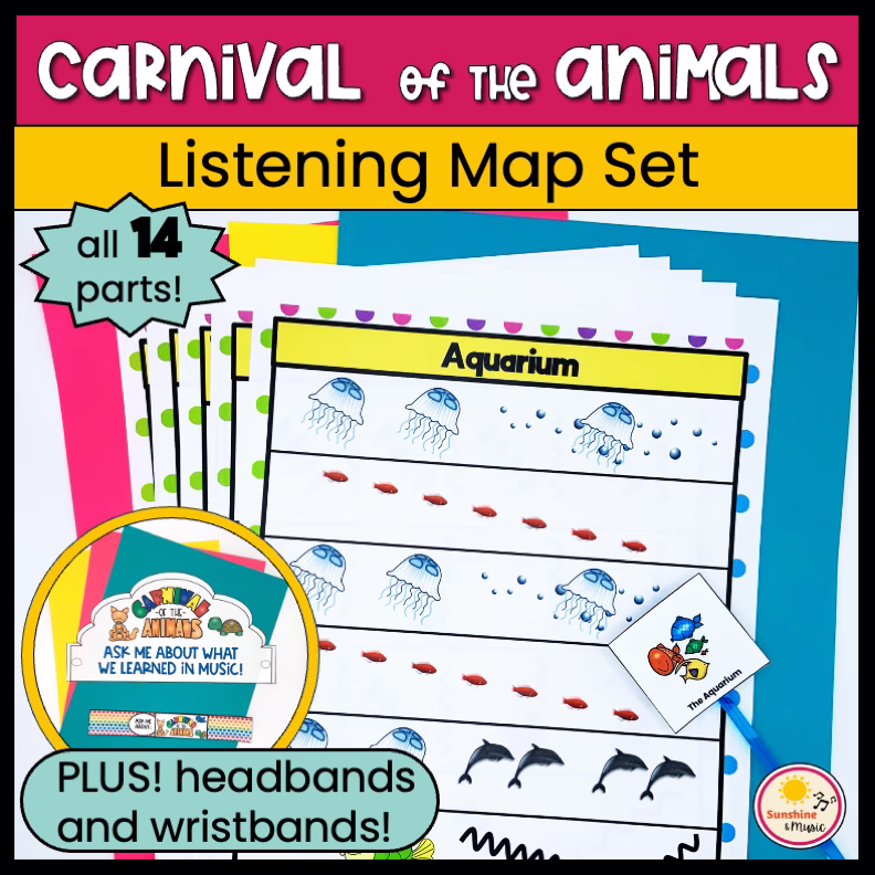 These Carnival of the Animals listening maps are a great resource to bring the joy of the Carnival of the Animals to your music classroom! Bring the joy of the Carnival of the Animals by Camille Saint-Saens into your music classroom with easy to follow listening maps of each movement! Add even more fun with student headbands and wristbands to really bring the Carnival of the Animals to life!