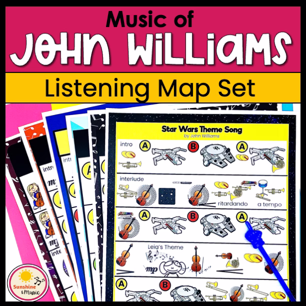 This John Williams Movie Music Set contains listening maps to seven musical favorites written by composer John Williams. Transport your students into the worlds of John Williams movie soundtracks. From the music of Harry Potter to the Theme from Jurassic Park, your students will love listening to famous music by John Willams.